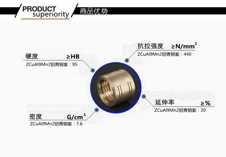 本產(chǎn)品實(shí)行GB標(biāo)準(zhǔn)………………………………………………… 根據(jù)客戶產(chǎn)品需求我們提供的鑄造方式有:離心鑄造,連續(xù)鑄造和金屬型鑄造。…………………………………………………………… 牌號(hào)ZCuAl9Mn2合金銅化學(xué)成分:Cu余量 Sn0.2 Pb0.1 Zn1.5 Al8-10 Mn1.5-2.5 Si0.2 Sb0.05 P0.1 As0.05