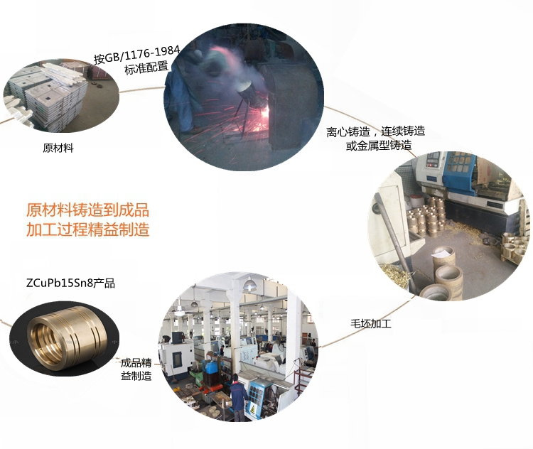 本產(chǎn)品實(shí)行GB/1176-1984標(biāo)準(zhǔn)……………………………………… 根據(jù)客戶產(chǎn)品需求我們提供的鑄造方式有:離心鑄造,連續(xù)鑄造和金屬型鑄造?!?牌號(hào)ZCuPb15Sn8合金銅化學(xué)成分:Cu余量 Sn7-9 Pb13-17 Zn2 Fe0.25 Al0.01 Mn0.2 Si0.01 Ni2 Sb0.5 P0.1 S0.1
